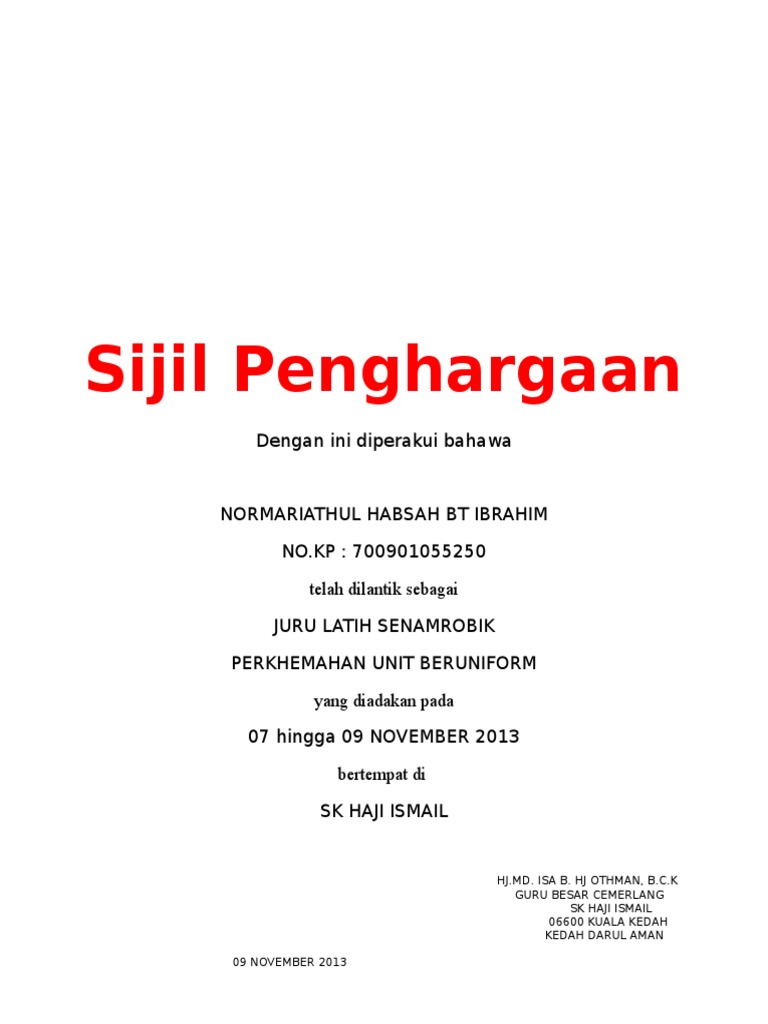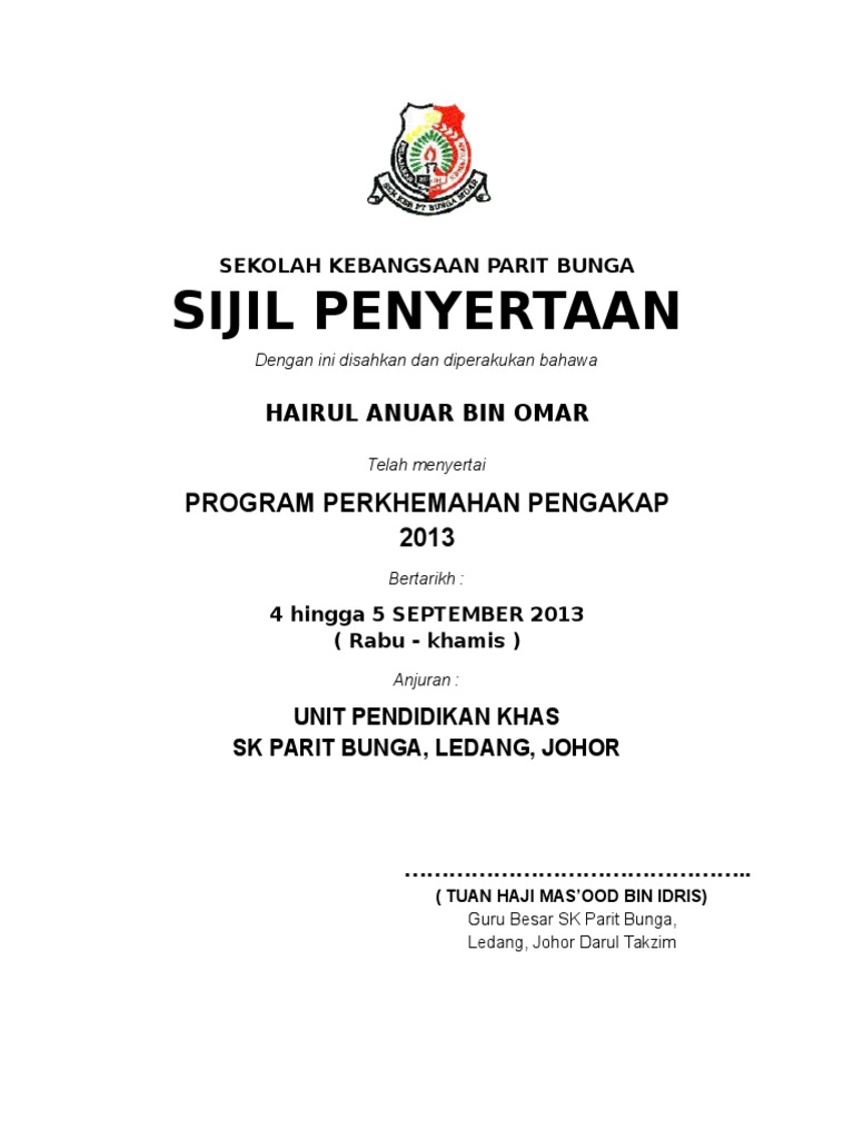 May 02 2014 contoh sijil penyertaan sijil penyertaan perkhemahan bersepadu peringkat sekolah sk kampong aur adzie normien al awang 011231060971 dengan sukacitanya. Berikut disertakan 11 Template Design Sijil. Kemudian berjumpalah dengan guru besar untuk tandatangan pengesahan.