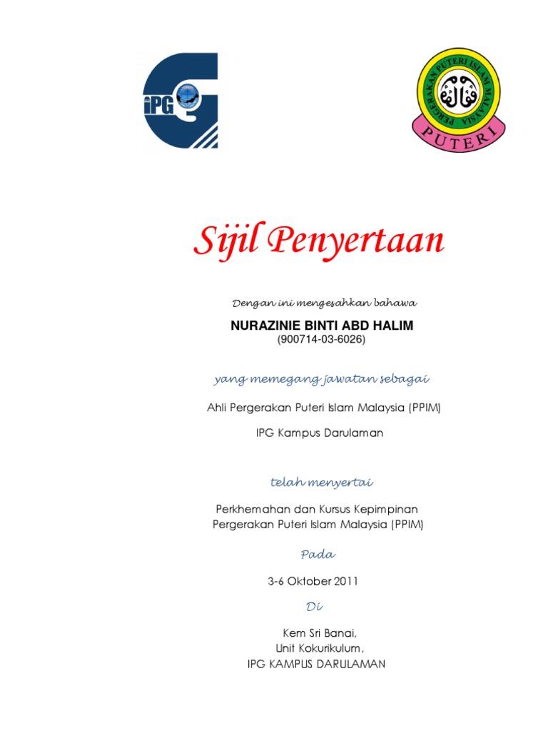 . This document was uploaded by user and they confirmed that they have the. Sijil penyertaan perkhemahan Zatil Nabilah 1 of 9. Sijil pertandingan sijil penyertaan dan sijil penghargaan ini penting bagi pelajar bagi membukti seseorang pelajar.