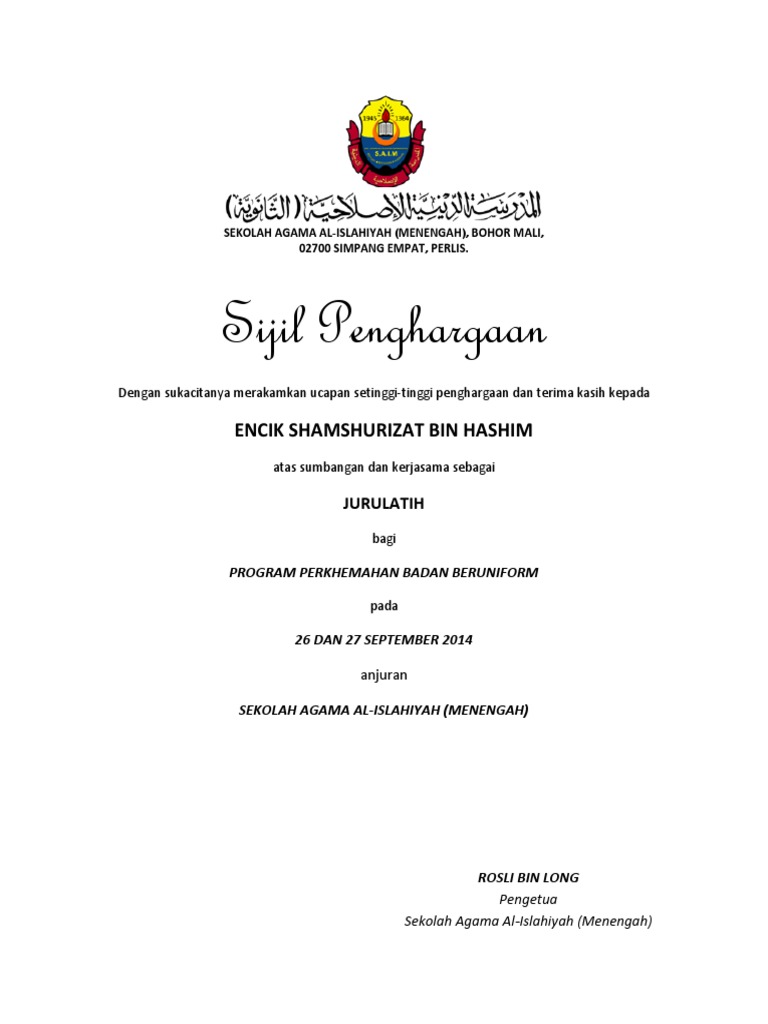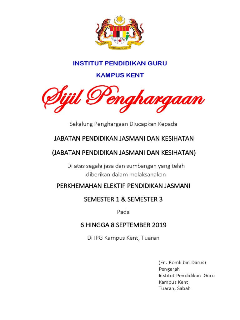 CONTOH TEMPLATE SIJIL PENGHARGAAN Download Muat Turun Edit Print Jer Sepanjang pembelajaran dan pengajaran secara di atas. Sekolah Kebangsaan Kampung Wa. Surat rasmi memohon kebenaran mengadakan aktiviti.